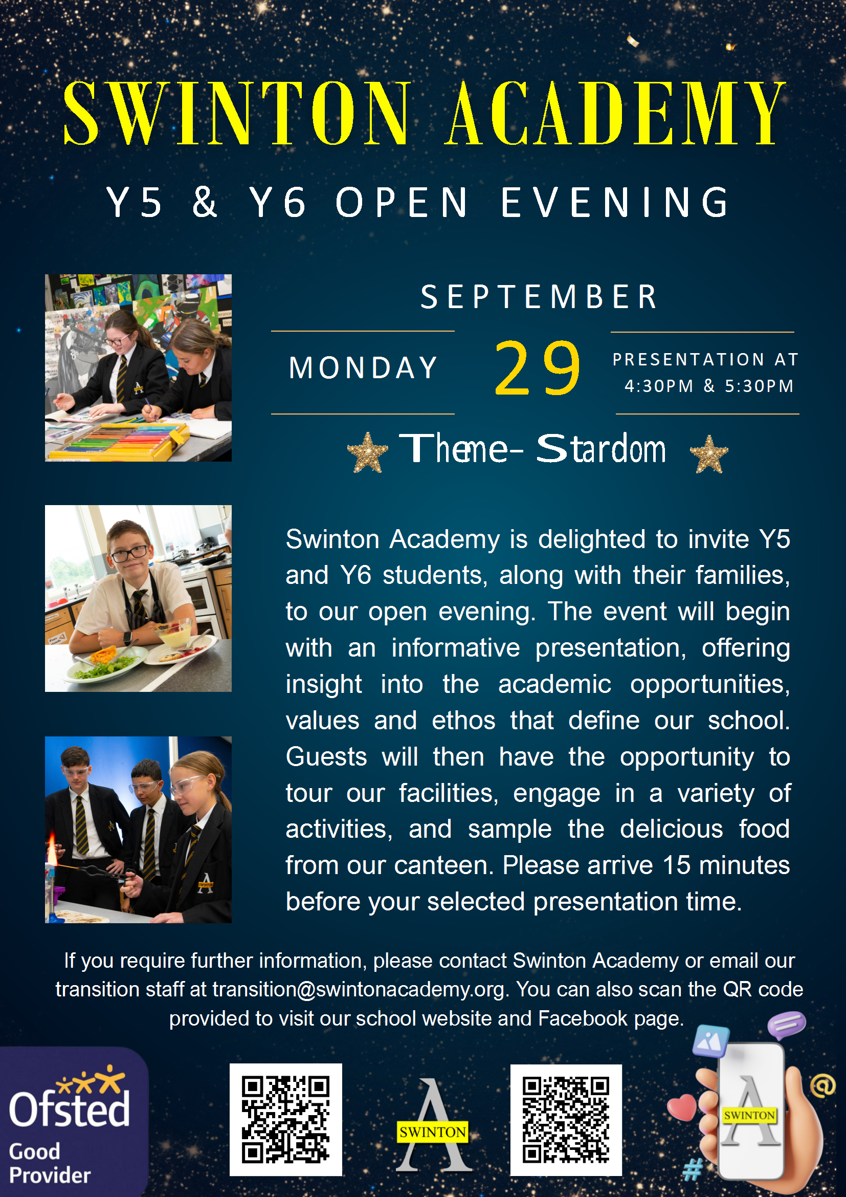 Welcome to our new academy website. We hope you find all the information about Swinton Academy useful but should you require any further information please contact us.